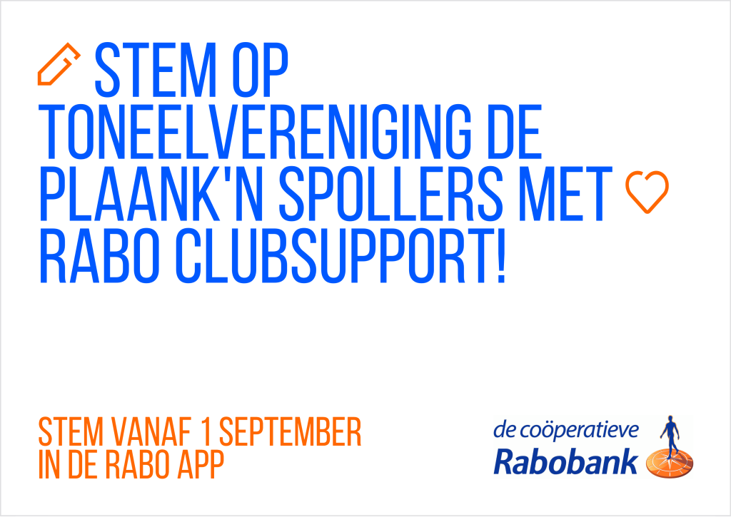 Graag willen wij iedereen namens onze vereniging bedanken voor hun uitgebrachte stem. Ook dit jaar weer mochten wij een mooie cheque van de Rabo Clubsupport in ontvangst nemen.